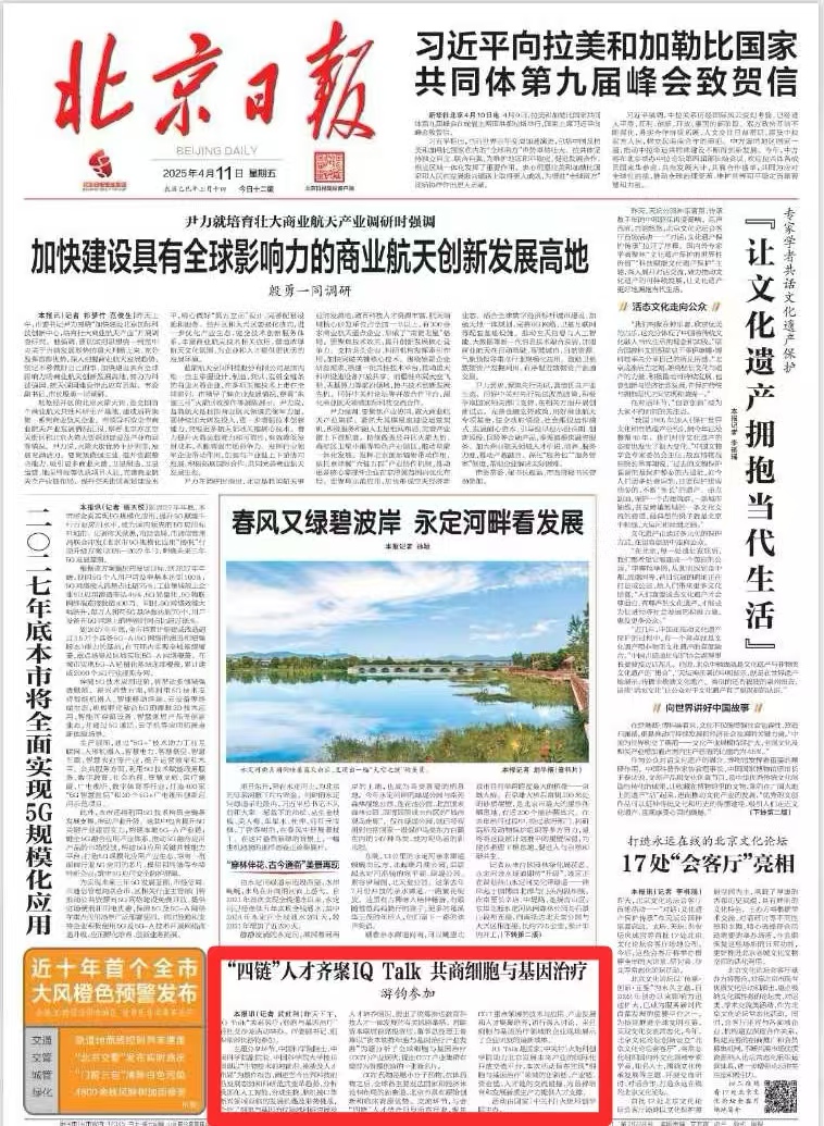 IQ Talk是国家(中关村)火炬科创学院助力北京发展未来产业的国际化开放交流平台,本次活动旨在实现“细胞与基因治疗”领域的创新链、产业链、资金链、人才链的交流碰撞,为首都培育和发展新质生产力提供人才支撑。